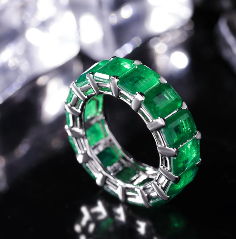 925 Sterling Silver 5*7MM Emerald Created Moissanite Gemstone Row Ring
